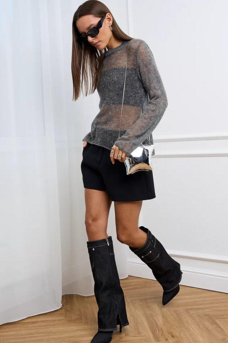 Loose Hollow Out Wool Blend Knit Blouse
