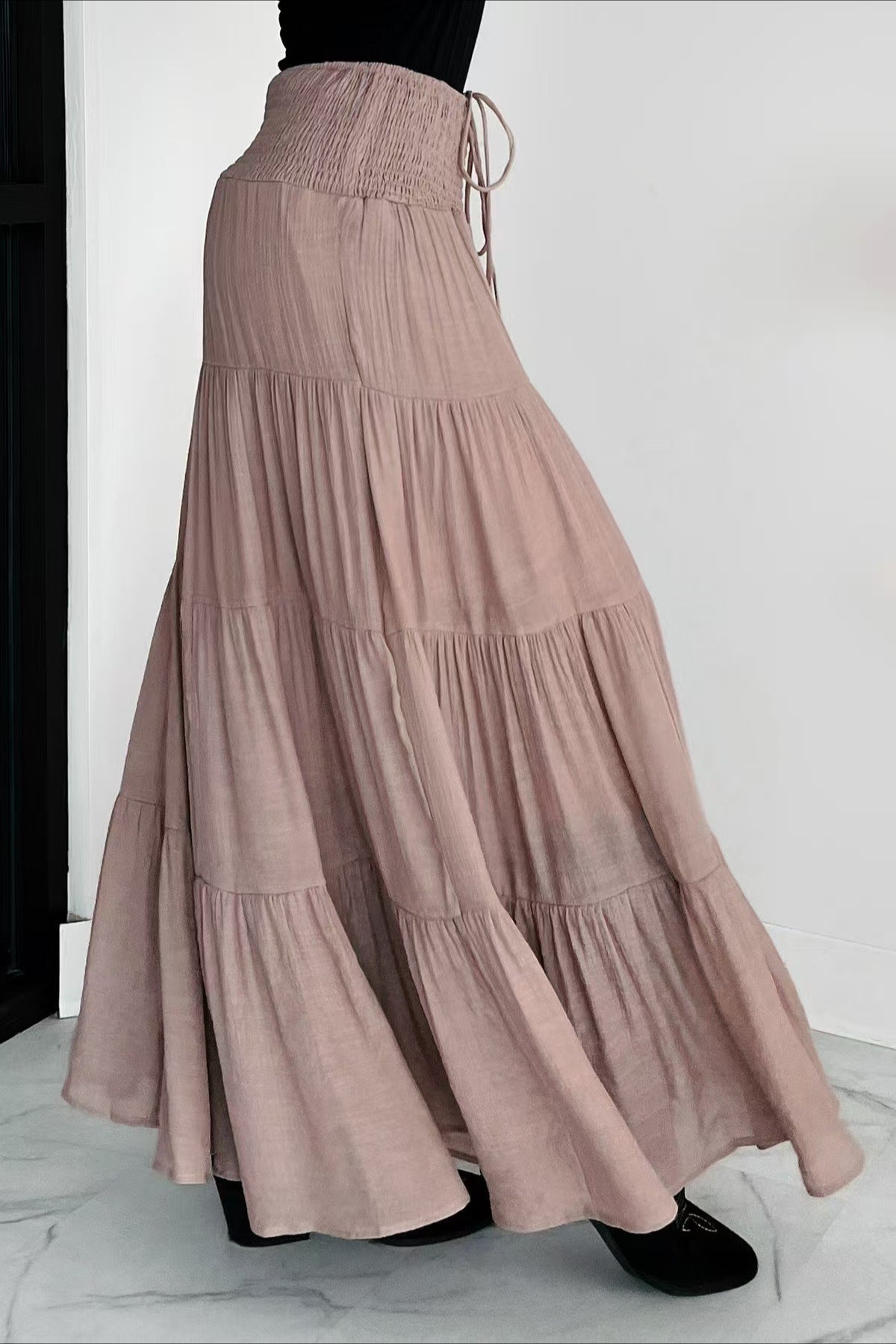Boho Chic High Waisted Contrast Drawstring A Line Maxi Skirt
