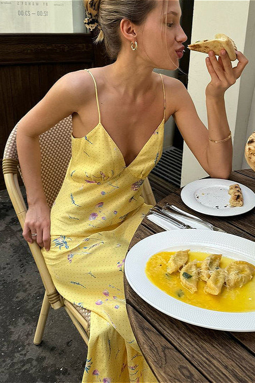 Sleeveless Deep V High Waist Off Shoulder Maxi Floral Dress