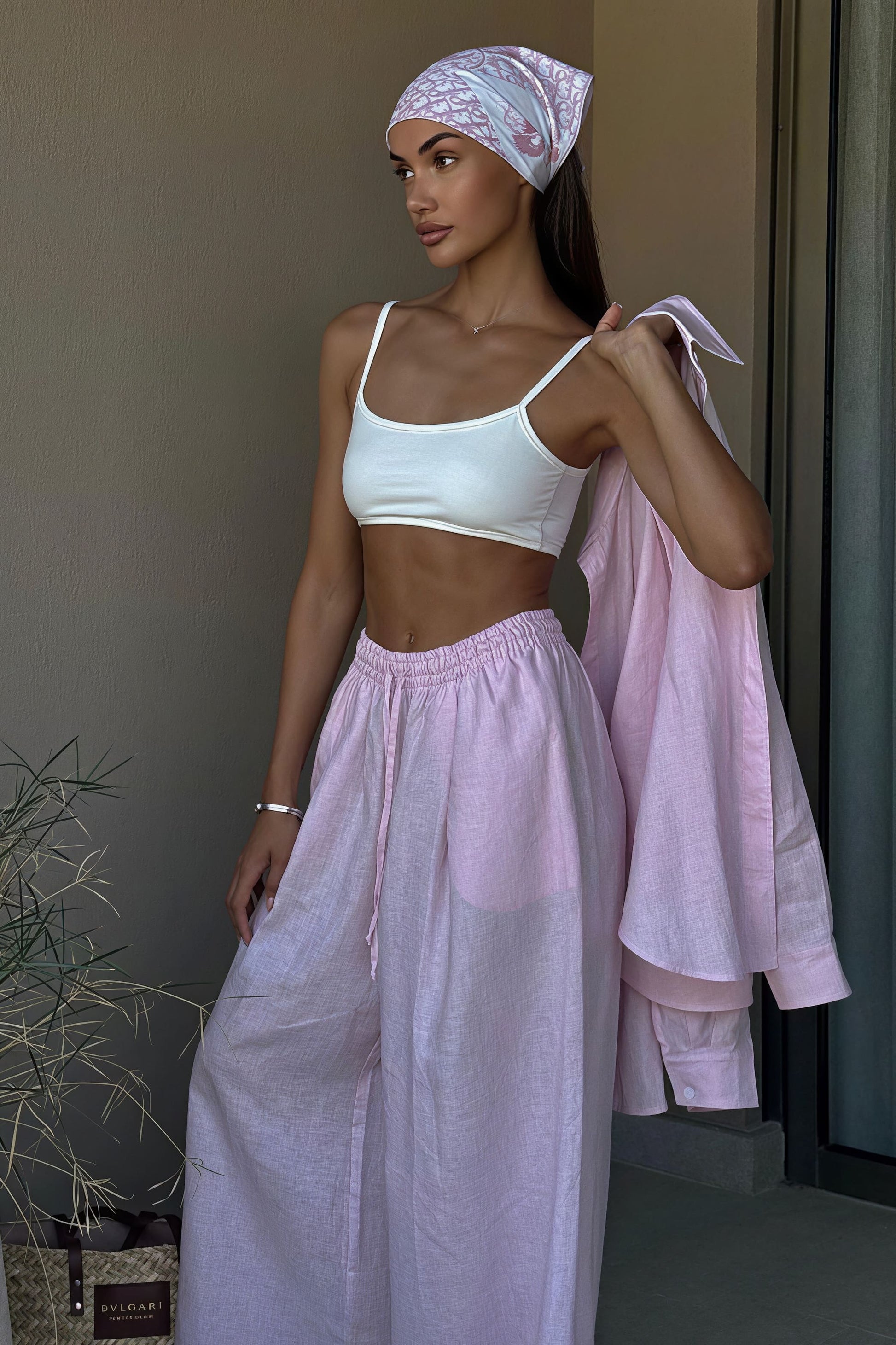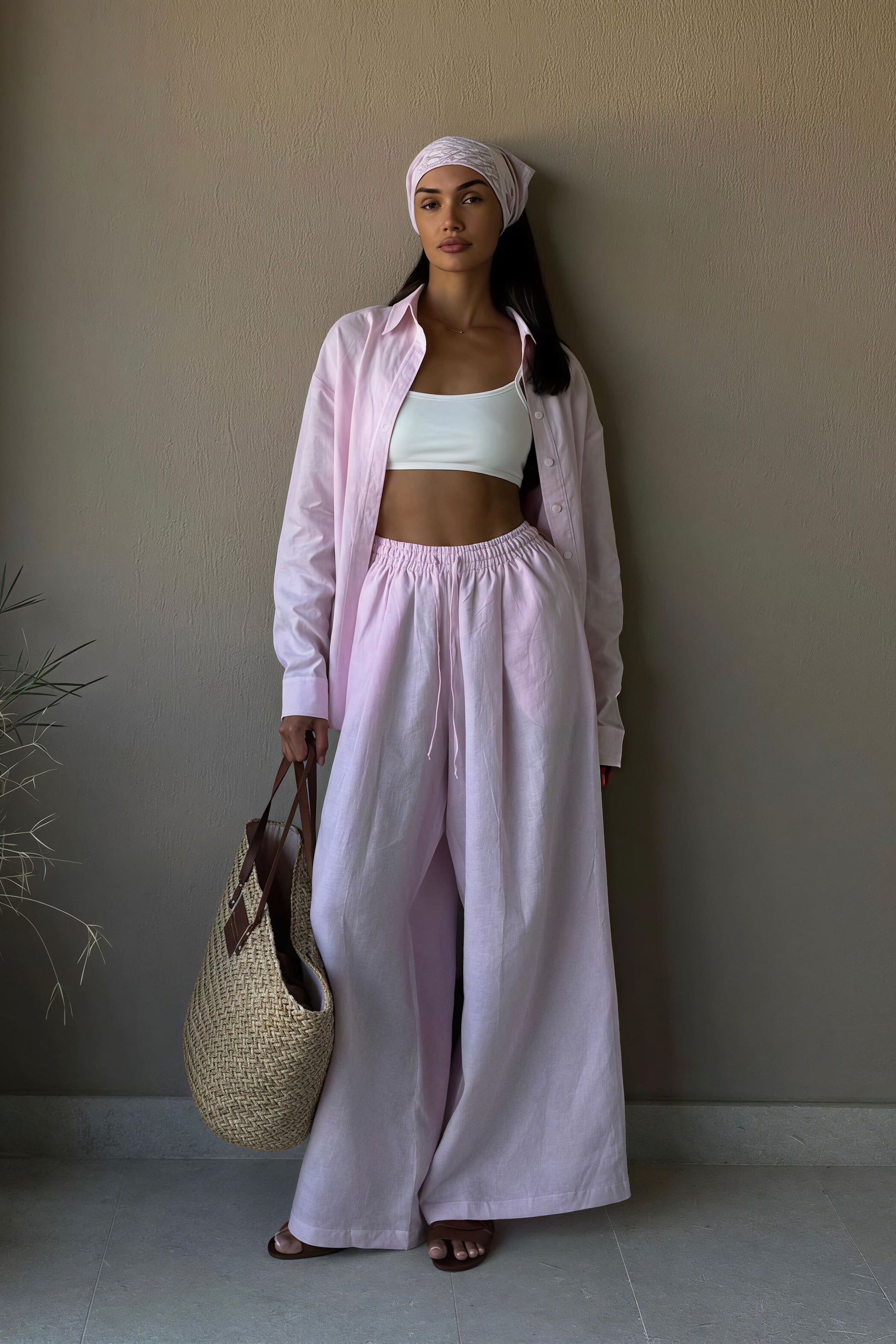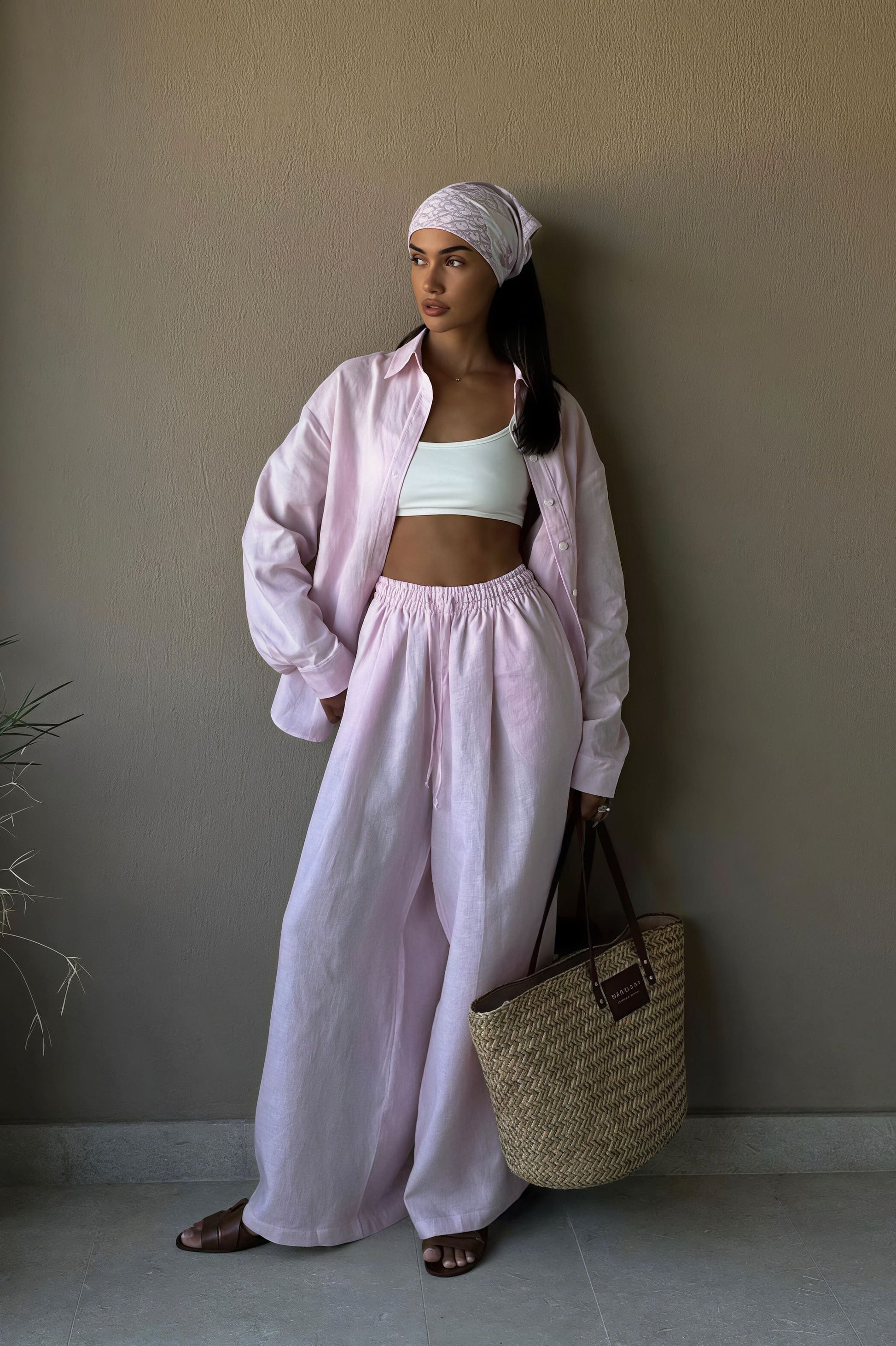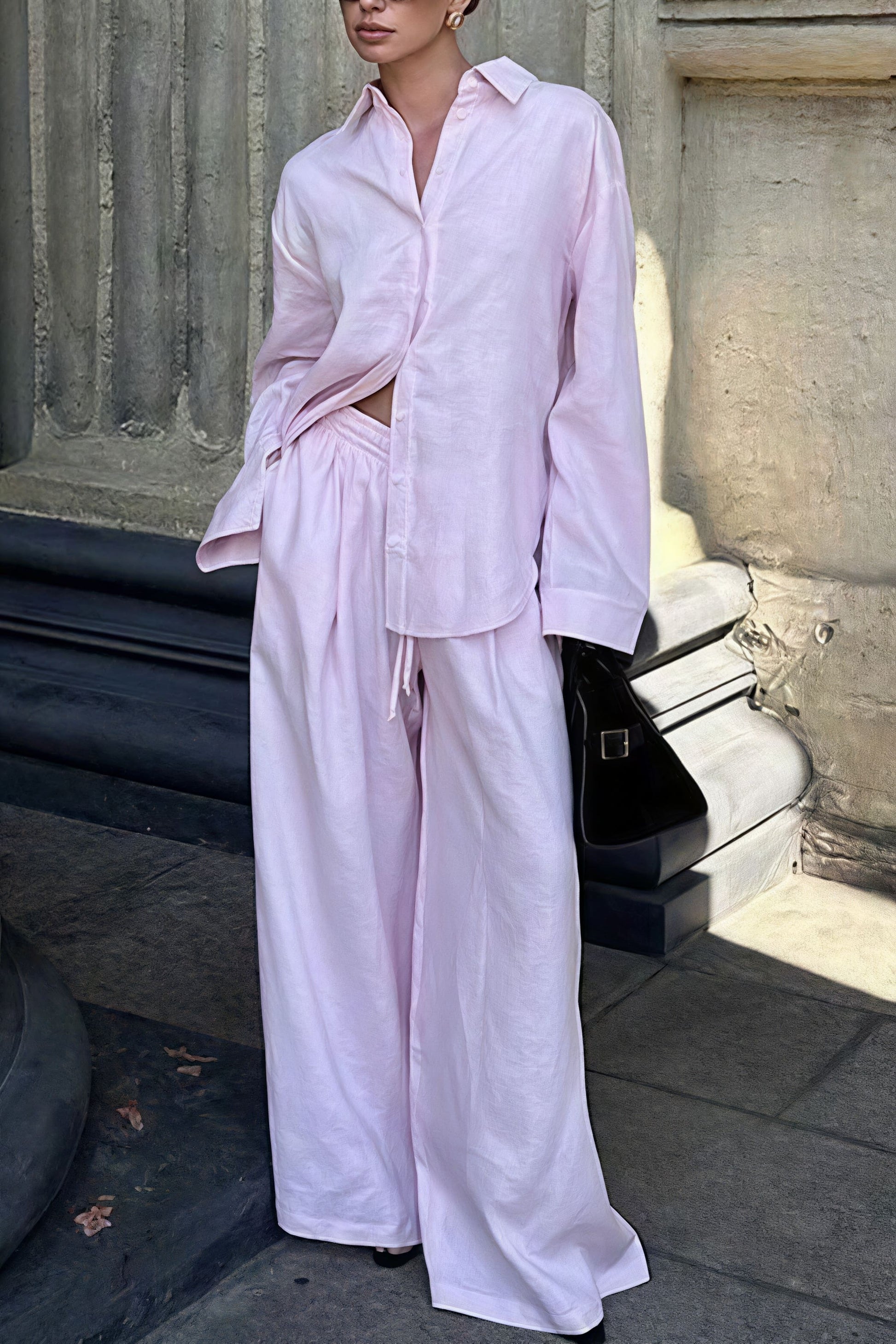 Cotton Loose Long Sleeve Shirt Pants Two Piece Set